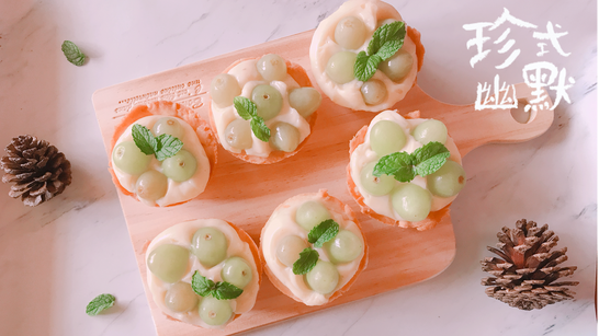 組裝卡士達、無籽葡萄與薄荷葉